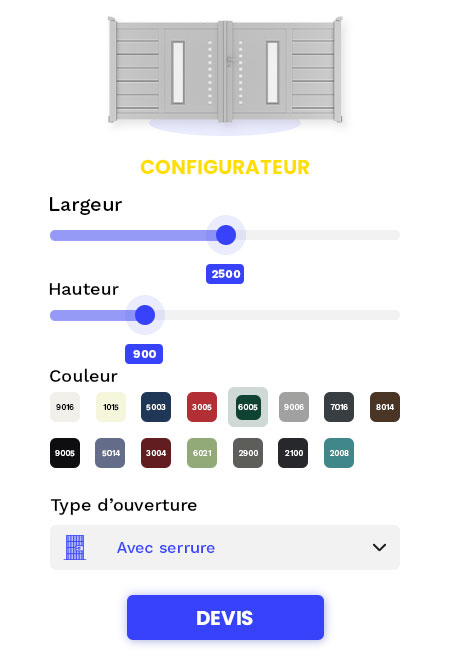 Définissez les dimensions, la couleur, le type d’ouverture et bien d’autres paramètres selon votre besoin de futur portail ou portillon.