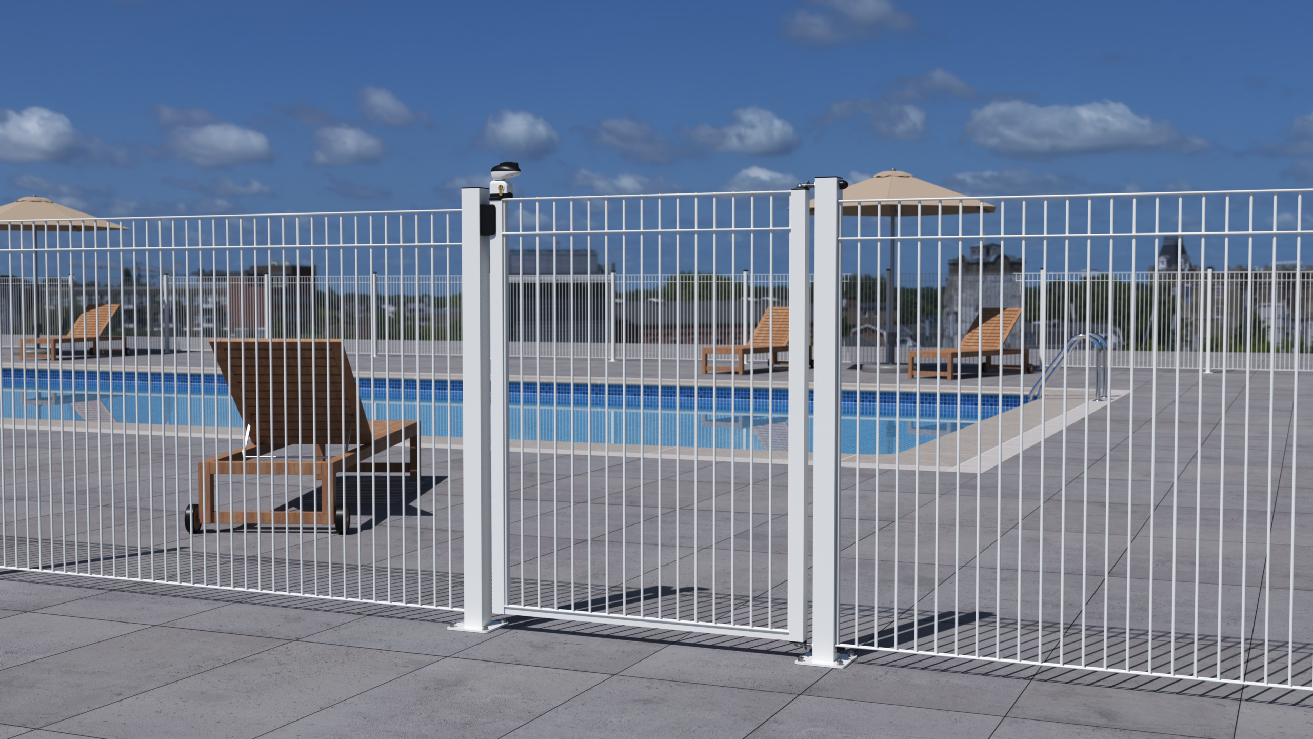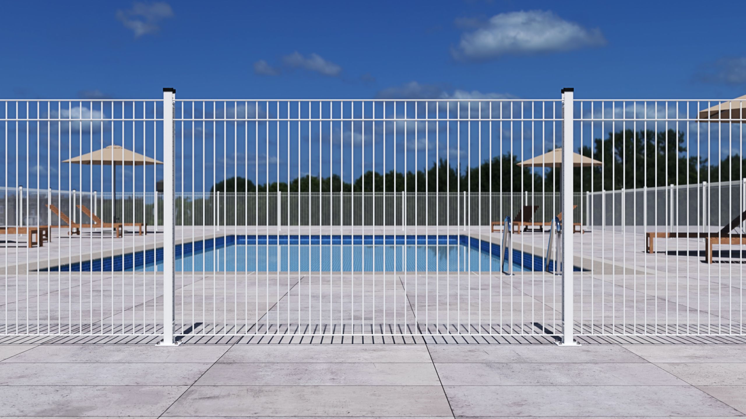 Poteaux : 60 x 60mm à sceller ou sur platine 140 x 140mm (goujons et cache-écrous inclus)